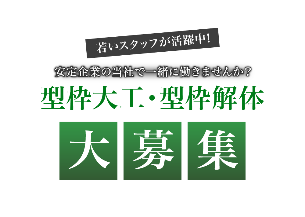 基本的には建築物の骨組みに、コンクリートを流し込むための器を木材などで組み立てて、コンクリートを流し込み、固めて、コンクリートの形状を作る作業を行い、型枠に流し込んだコンクリートが十分に固まり、強度が出た時点でコンクリートの形成につかった板や板金などを剥がして片付ける作業のことをいいます。